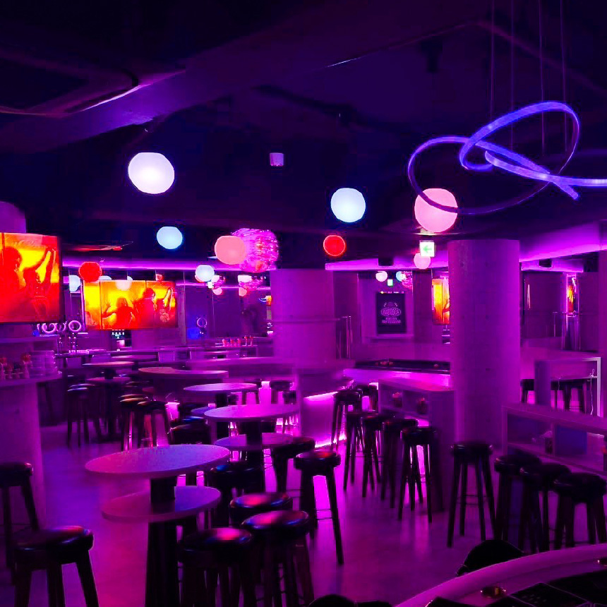 "オトナ"が集うアミューズメントバーで、明るい楽しい雰囲気です。男性はスーツを着用されている方も多いです。