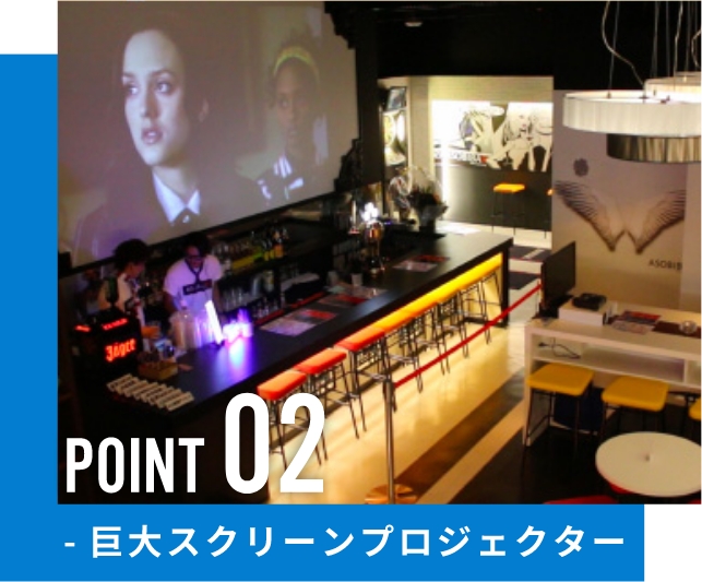 イベントで大活躍する巨大スクリーンのプロジェクターや店内の隅々までアナウンスできるマイクも完備!!